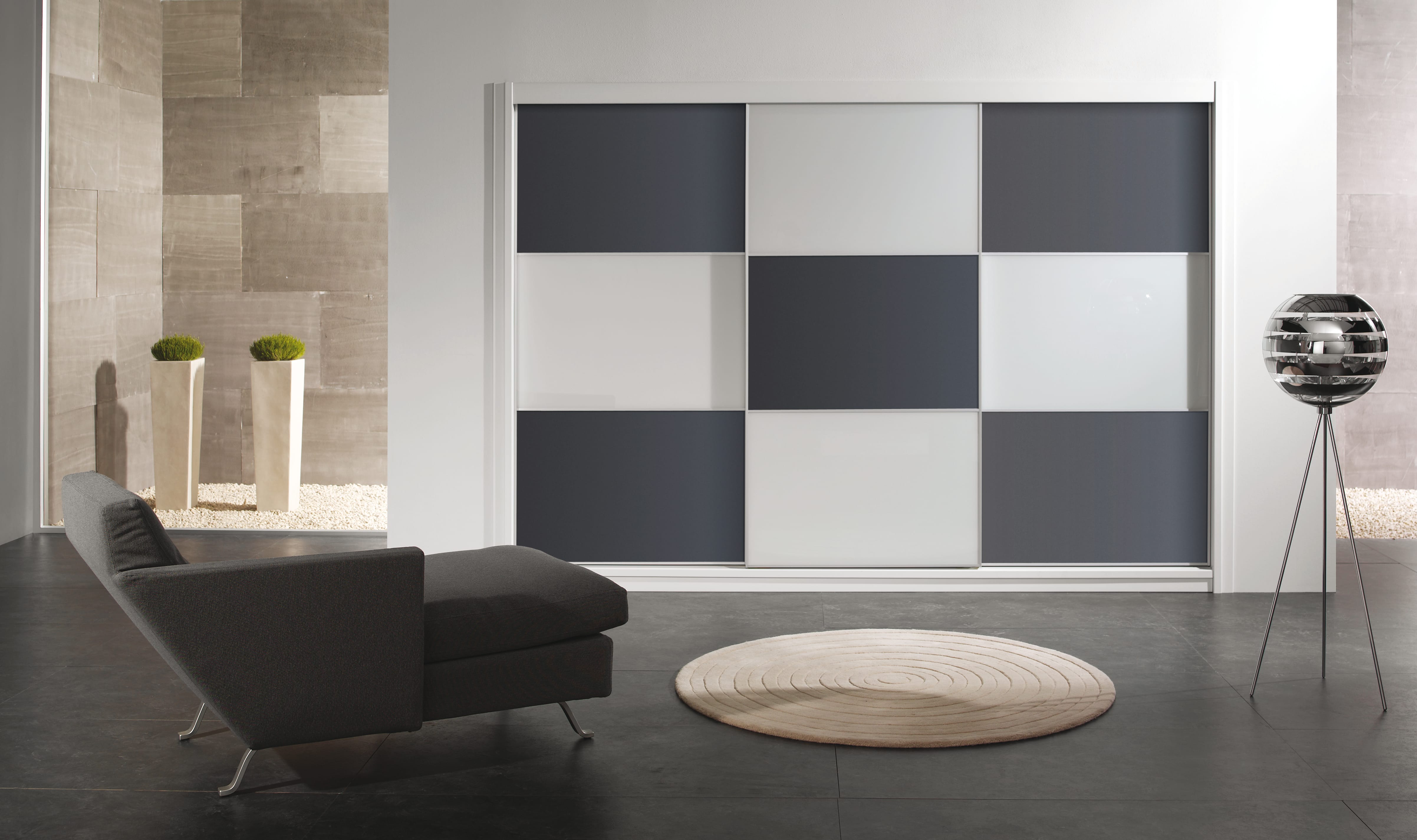 Liukuovet maalatulla lasilla